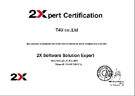 2013年11月 2Xのパートナー試験に日本企業の中で初めて認定されました